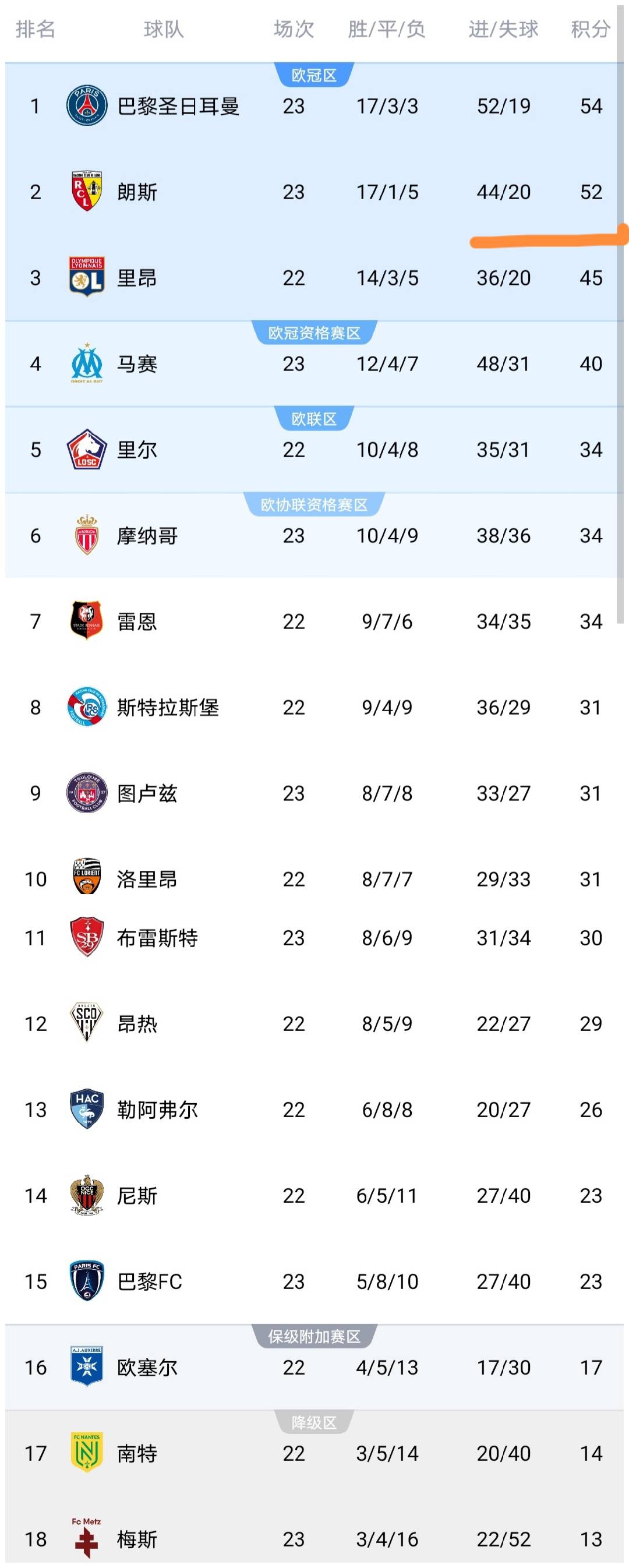 ด้วยเลนส์แพ้ 2-3 และปารีส แซงต์-แชร์กแมงชนะ 3-0 อันดับล่าสุดของลีกเอิงมีการเปลี่ยนแปลงที่ด้านบน: โมนาโก, รามอส, กอนซาโล