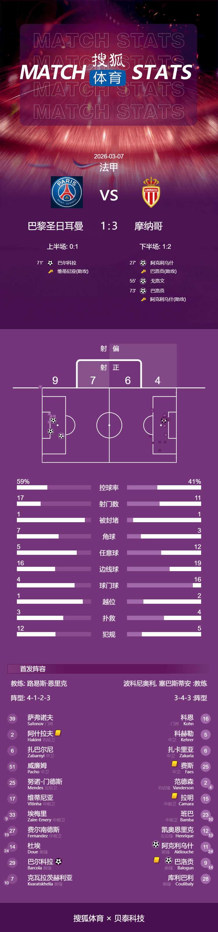 เมื่อเวลา 03:45 น. ของวันที่ 7 มีนาคม ตามเวลาปักกิ่ง ในรอบที่ 25 ของลีกฝรั่งเศส 25/26 ผู้นำปารีส แซงต์-แชร์กแมง ขึ้นนำในสนามกีฬาปรินซ์ พาร์ค เพื่อเผชิญหน้ากับโมนาโก ในครึ่งแรก ปารีสสร้างภัยคุกคามซ้ำแล้วซ้ำเล่า แต่ทำคะแนนได้นาน แต่ถูก Akleus ยึดไว้เพื่อทำลายการหยุดชะงัก ในครึ่งหลัง โกโลวินซึ่งออกจากบัลลังก์ ขยายคะแนน และบาร์โคลาเมื่อดึงเมืองกลับมาเพื่อปารีส แต่บาโลกอนกลับคืนลูกบอลเพื่อผนึกชัยชนะในทันที ในท้ายที่สุด ปารีส แซงต์-แชร์กแมง แพ้โมนาโก 1-3