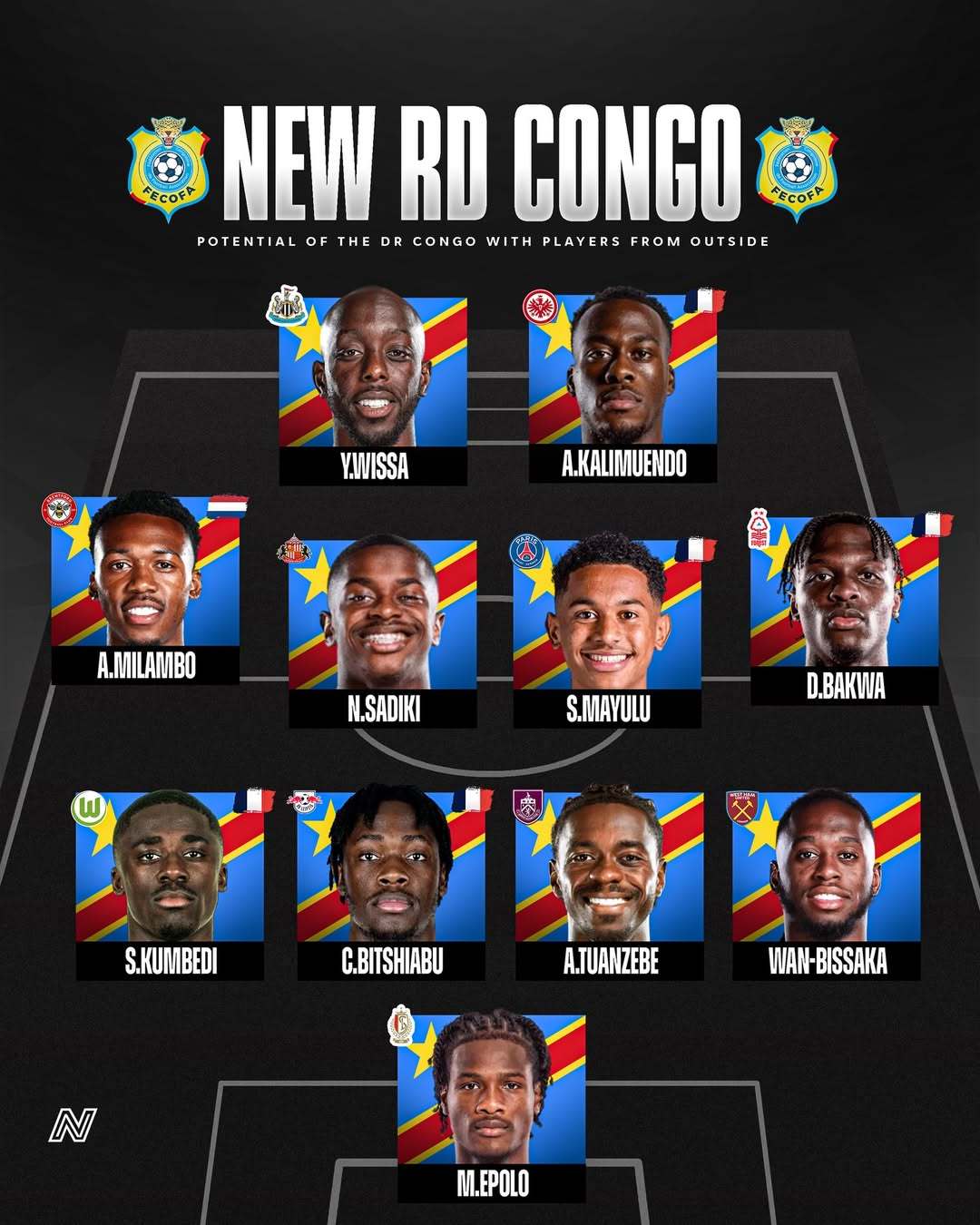 ฟุตบอลโลกปีนี้ที่สหรัฐอเมริกา แคนาดา และเม็กซิโกเป็นครั้งที่สองที่คองโกประชาธิปไตยจะเข้าร่วมการแข่งขันฟุตบอลโลก แต่เมื่อพวกเขาเข้าร่วมการแข่งขันฟุตบอลโลกครั้งแรกในปี 1974 พวกเขายังถูกเรียกว่าสาธารณรัฐซาอีร์ด้วย หลังจาก 52 ปี พวกเขาได้ก้าวเข้าสู่ฟุตบอลโลกอีกครั้ง ซึ่งเป็นฟุตบอลโลกครั้งใหม่ที่เหมาะสม สำหรับทีมนี้ คู่แข่งรายใหญ่ที่สุดในกลุ่ม K ไม่ใช่โปรตุเกส แต่เป็นอุซเบกิสถานและโคลอมเบีย ตราบใดที่พวกเขาได้คะแนนเพียงพอในสองทีมนี้ พวกเขาจะมีโอกาสก้าวหน้า สำหรับเกมกับโปรตุเกส มันเป็นเรื่องดีที่จะอารมณ์เสีย แต่ถ้ามันใช้พลังงานมากเกินไป มันอาจจะส่งผลกระทบอย่างมากต่อการเลื่อนตำแหน่งของพวกเขา