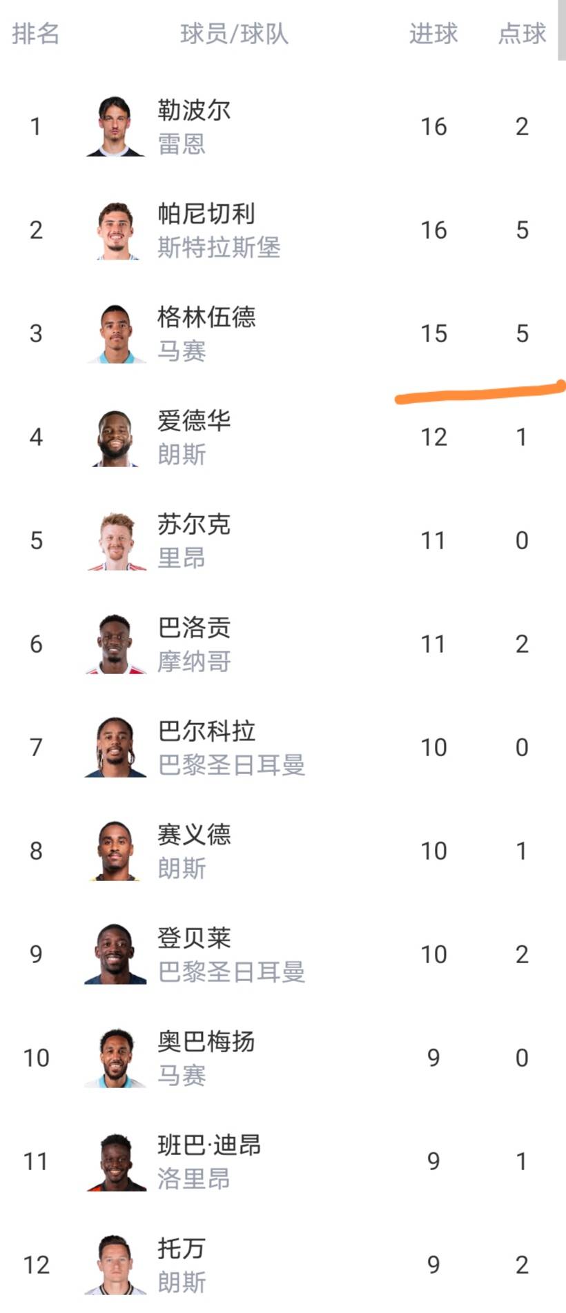รายชื่อผู้ทำประตู