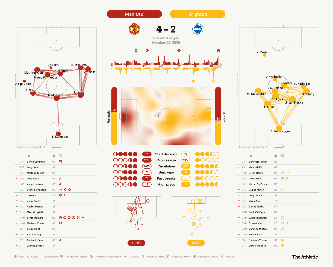 อโมริม ซึ่งได้เปลี่ยนตัวคาเซมิโร่ลงแทนโคเบ เมนอร์ ถูกบังคับให้ส่งมิดฟิลด์อีกคนคืออูการ์เต้ลงสนามเพื่อเสริมความแข็งแกร่งในแดนกลาง อย่างไรก็ตาม ไบรท์ตันยังคงมีโอกาสที่จะตีเสมอเป็น 3-3 ซึ่งไม่ใช่เรื่องแปลกใหม่แต่อย่างใด คู่แข่งในขณะนี้คงคาดการณ์ไว้แล้วว่าเมื่อใดที่คาเซมิโร่จะถูกเปลี่ยนตัวออก
