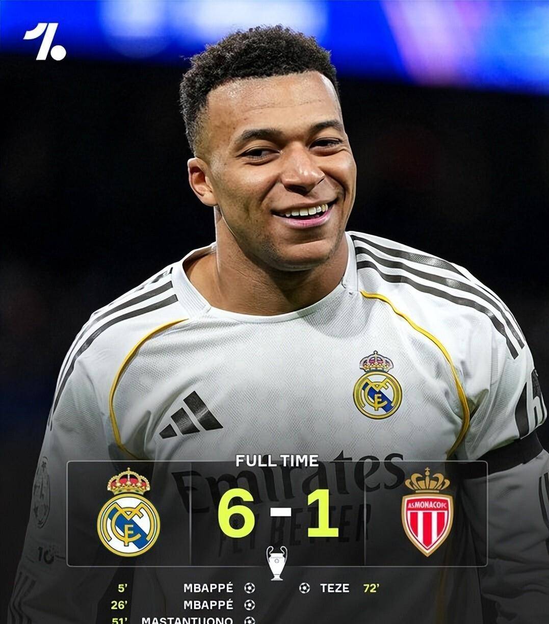 แน่นอนว่าค่ำคืนนี้ยังได้เห็นเรื่องราวของเหล่าผู้ยิ่งใหญ่ที่เติบโตยิ่งใหญ่ขึ้นไปอีก ที่สนามเบร์นาเบว เรอัล มาดริดได้จัดงานเลี้ยงการทำประตูอย่างแท้จริง เมื่อเผชิญหน้ากับโมนาโก เอ็มบัปเป้ทำประตูได้อย่างไม่ยากเย็นถึงสองครั้งในครึ่งแรก โดยทำประตูในนาทีที่ 5 และ 26 ครึ่งหลังกลายเป็นเหมือนการแสดงโชว์ โดยมาสตานโดโน (51') และวินิซิอุส (63') เพิ่มประตูเพิ่มเติม เมื่อรวมกับประตูทำเข้าประตูตัวเองของกองหลังโมนาโก เคห์เรอร์ ในนาทีที่ 55 ทำให้เรอัล มาดริดนำห่างถึงห้าประตูภายใน 65 นาที แม้ว่าเตเวซของโมนาโกจะยิงตีตื้นในนาทีที่ 72 แต่เบลลิงแฮมก็ยิงประตูปิดท้ายในนาทีที่ 80 ทำให้สกอร์จบลงที่ 6-1 ด้วยชัยชนะอย่างเด็ดขาดนี้ เรอัล มาดริดได้แสดงให้เห็นถึงศักยภาพของพวกเขาในฐานะราชาแห่งแชมเปียนส์ลีก ซึ่งแตกต่างอย่างสิ้นเชิงกับความสะดุดของยักษ์ใหญ่ยุโรปทีมอื่นๆ