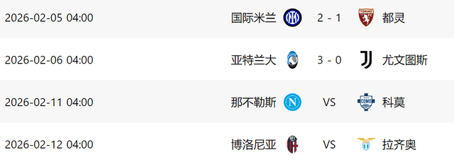 เมื่อวันที่ 6 กุมภาพันธ์ เวลาปักกิ่ง รอบก่อนรองชนะเลิศนัดที่สองของโคปปา อิตาเลีย ยูเวนตุสพ่ายแพ้อย่างหนัก 0-3 ในเกมเยือนอตาลันต้า หลังจากผลการแข่งขันนี้ ยูเวนตุสต้องตกรอบการแข่งขันอย่างน่าเสียดาย ไม่สามารถผ่านเข้าสู่รอบรองชนะเลิศได้ ขณะที่อตาลันต้าผ่านเข้าสู่รอบสี่ทีมสุดท้าย
