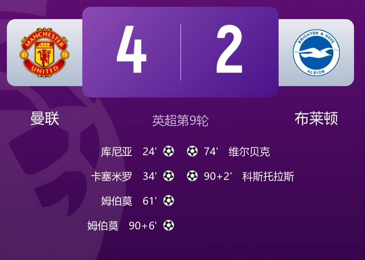 ที่สนามโอลด์ แทรฟฟอร์ด แมนเชสเตอร์ ยูไนเต็ด เอาชนะไบรท์ตัน 4-2 คว้าชัยชนะติดต่อกันเป็นครั้งที่สาม