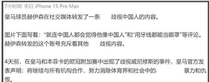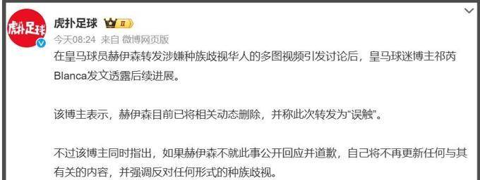 กระแสต่อต้านเกิดขึ้นอย่างรวดเร็ว! เพียงสองวันหลังจากแถลงการณ์ต่อต้านการเลือกปฏิบัติของเรอัล มาดริด ข้อความเหยียดเชื้อชาติของนักเตะที่มีต่อประเทศจีนก็ถูกลบออกไป ตามมาด้วยความเงียบและไม่มีคำขอโทษใดๆ