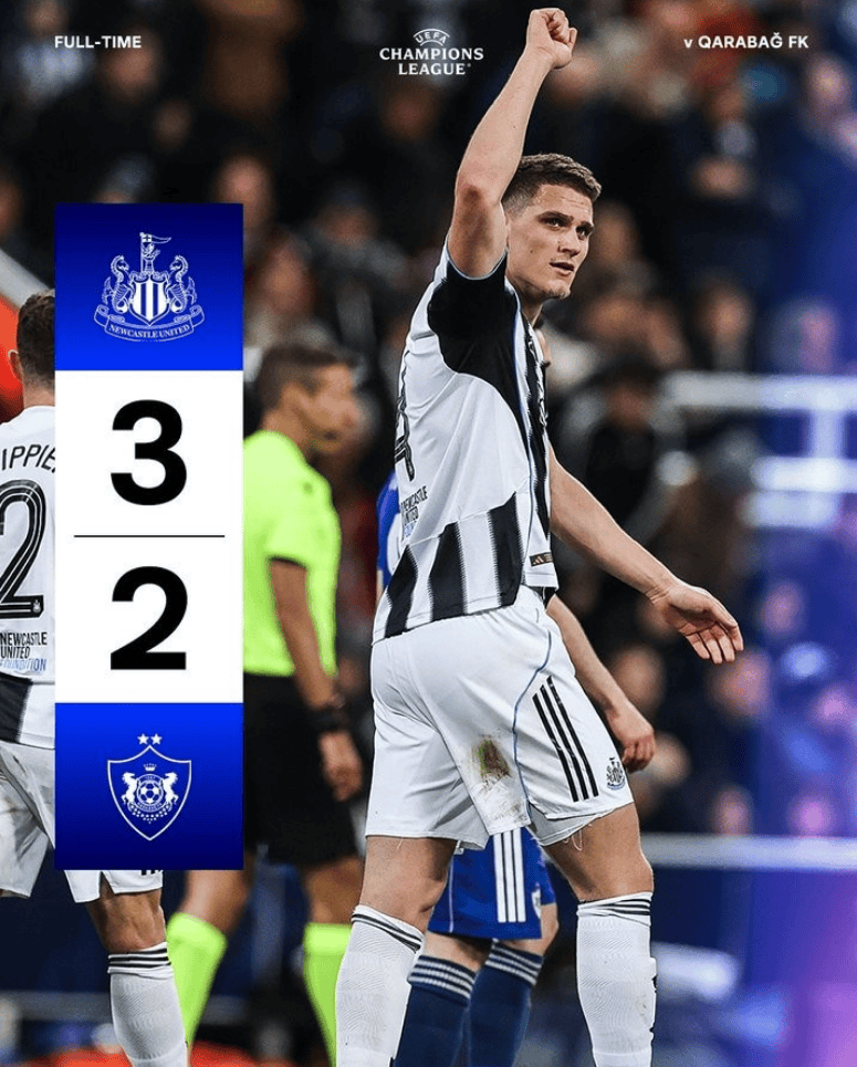 นิวคาสเซิล ยูไนเต็ด 3-2 คาราบัค, ชนะรวม 9-3 ผ่านเข้ารอบอย่างเด็ดขาด