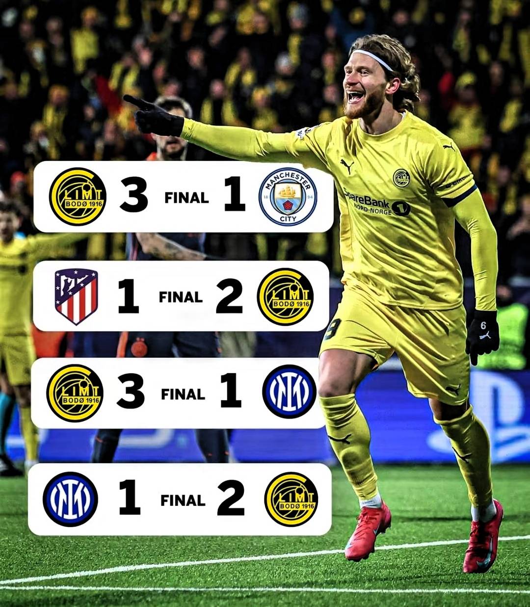 ในฐานะม้ามืดตัวใหญ่ที่สุดของศึกยูฟ่าแชมเปียนส์ลีกฤดูกาลนี้จนถึงขณะนี้ Bodø/Glimt จากลีกสูงสุดของนอร์เวย์ Tippeligaen ได้แสดงผลงานที่น่าประทับใจตลอดรอบแบ่งกลุ่ม พวกเขาคว้าชัยชนะติดต่อกันเหนือแมนเชสเตอร์ ซิตี้ และแอตเลติโก มาดริด ในสองนัดสุดท้าย ส่งผลให้ผ่านเข้าสู่รอบเพลย์ออฟของแชมเปียนส์ลีกได้สำเร็จ