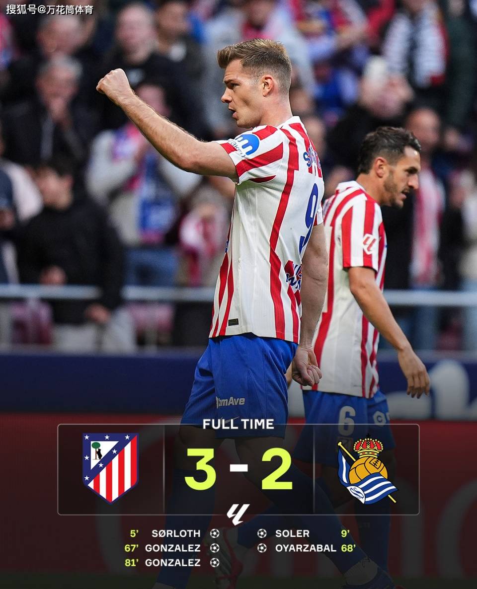 ในนาทีที่ 81 นิโคลัส กอนซาเลซ กระโดดสูงในเขตโทษและยิงประตู และยังยิงประตูได้สององศาในเวลาเดียวกัน ในท้ายที่สุด แอตเลติโก มาดริด เอาชนะเรอัล โซเซียดาด 3-2 อย่างหวุดหวิด และคว้าชัยชนะติดต่อกันในลีกสามนัด