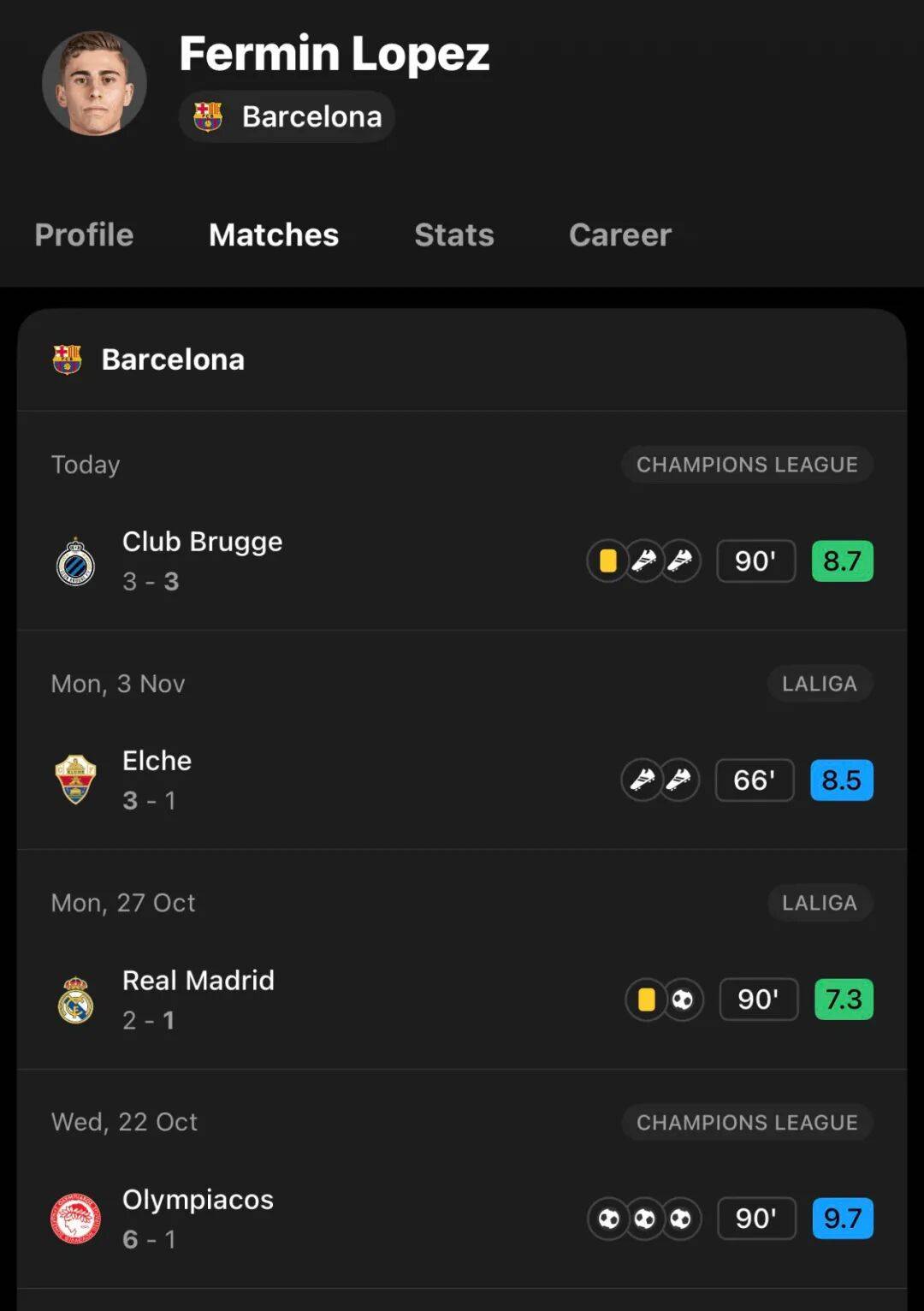 เวลา 04:00 น. ตามเวลาปักกิ่ง วันที่ 6 พฤศจิกายน บาร์เซโลนาเสมอกับคลับบรูจจ์ 3-3 ในเกมเยือน ในรอบที่สี่ของรอบแบ่งกลุ่มแชมเปียนส์ลีก ในเกมนี้ ทีมจากคาตาลันตามหลังสามครั้งแต่สามารถตีเสมอได้ในทุกครั้งเฟอร์มิน วัย 22 ปี โชว์ฟอร์มได้อย่างน่าประทับใจ โดยทำแอสซิสต์ให้เฟอร์ราน ตอร์เรส และยามาลทำประตูได้ ผลงานล่าสุดของเฟอร์มินนั้นยอดเยี่ยมอย่างไม่ต้องสงสัย กองกลางตัวรุกวัย 22 ปีรายนี้มีส่วนร่วมโดยตรงกับ 8 ประตู (ทั้งยิงและแอสซิสต์) ใน 4 นัดหลังสุด ทำให้เขากลายเป็นกำลังหลักในทีมตัวจริงของบาร์เซโลน่าอย่างเหนียวแน่น ฟอร์มการเล่นของเขายังทำให้ดานี โอลโม นักเตะทีมชาติสเปนต้องนั่งเป็นตัวสำรองอีกด้วย