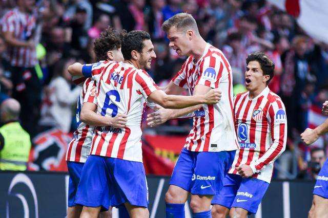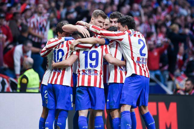↑ นักเตะแอตเลติโก มาดริด ฉลองประตูระหว่างการแข่งขัน