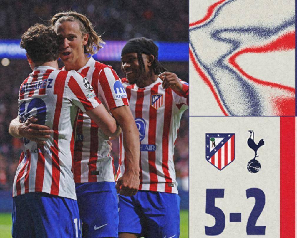 แอตเลติโก มาดริด เขียนสกอร์ใหม่เป็น 5-1 ในนาทีที่ 76 โอรักผู้รักษาประตูของแอตเลติโกมาดริดทำพลาดในบอลและโซแลนค์ที่ออกมาบนม้านั่งของท็อตแนมทำประตูและแก้ไขคะแนนสุดท้ายที่ 2-5 ท้ายเกม แอตเลติโก มาดริด ชนะ 5-2 ในบ้าน ชัยชนะครั้งนี้มีความหมายมากสำหรับแอตเลติโก และนี่เป็นครั้งแรกในรอบ 116 ปีของประวัติศาสตร์ทีมที่พวกเขายิงได้ 5 ประตูในเกมเดียวในแชมเปี้ยนส์ลีก