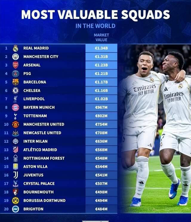 จากมุมมองของมูลค่าตลาดของสโมสร ตลาดซื้อขายนักเตะของเยอรมันประกาศจัดอันดับมูลค่าสโมสรล่าสุด เรอัล มาดริด กับ 13 400 ล้านยูโร ครองอันดับ 13 แมนเชสเตอร์ ซิตี้ ด้วยคะแนน 13 ตามมาด้วย 100 ล้าน อาร์เซนอลถึง 12 300 ล้านอันดับที่สาม Paris Saint-Germain และ Barcelona อยู่ในอันดับที่ 4 และ 5 ตามลำดับ อินเตอร์มิลานถึง 6 พันล้านยูโรอยู่ในอันดับที่ 12 ซึ่งต่ำกว่ามูลค่าตลาดของยักษ์ใหญ่ที่กล่าวถึงข้างต้นซึ่งสะท้อนให้เห็นว่ายังคงมีช่องว่างขนาดใหญ่ระหว่างความลึกทางการเงินและรายการของ Nerazzurri