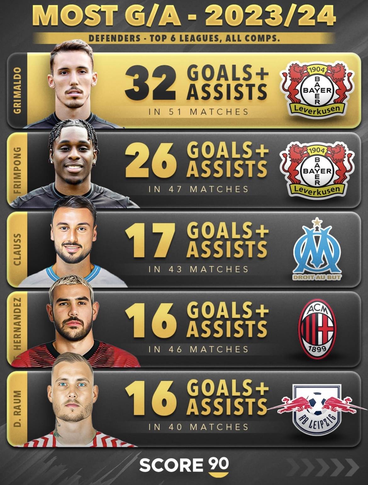 ช่องว่างข้อมูลฤดูกาล 2023/24 นั้นชัดเจนที่สุด กริมาร์โดเข้าร่วม 32 ประตู, ฟลายมัง 26 ครั้ง, เคลาส์ 17 ครั้ง, โอลิมปิกพิเศษ 16 ครั้ง และราอุม 16 ครั้ง เขามากกว่าอันดับที่สองถึงหกเท่า เกือบสองเท่าของอันดับสาม กริมร์โด 0. 63, ฟลิน เผิง 0. 55, เคลาส์ 0. 40, ธีโอ 0. 35. เขาไม่ได้เป็นเพียงคนแรก แต่ยังเป็นผู้นำด้วย