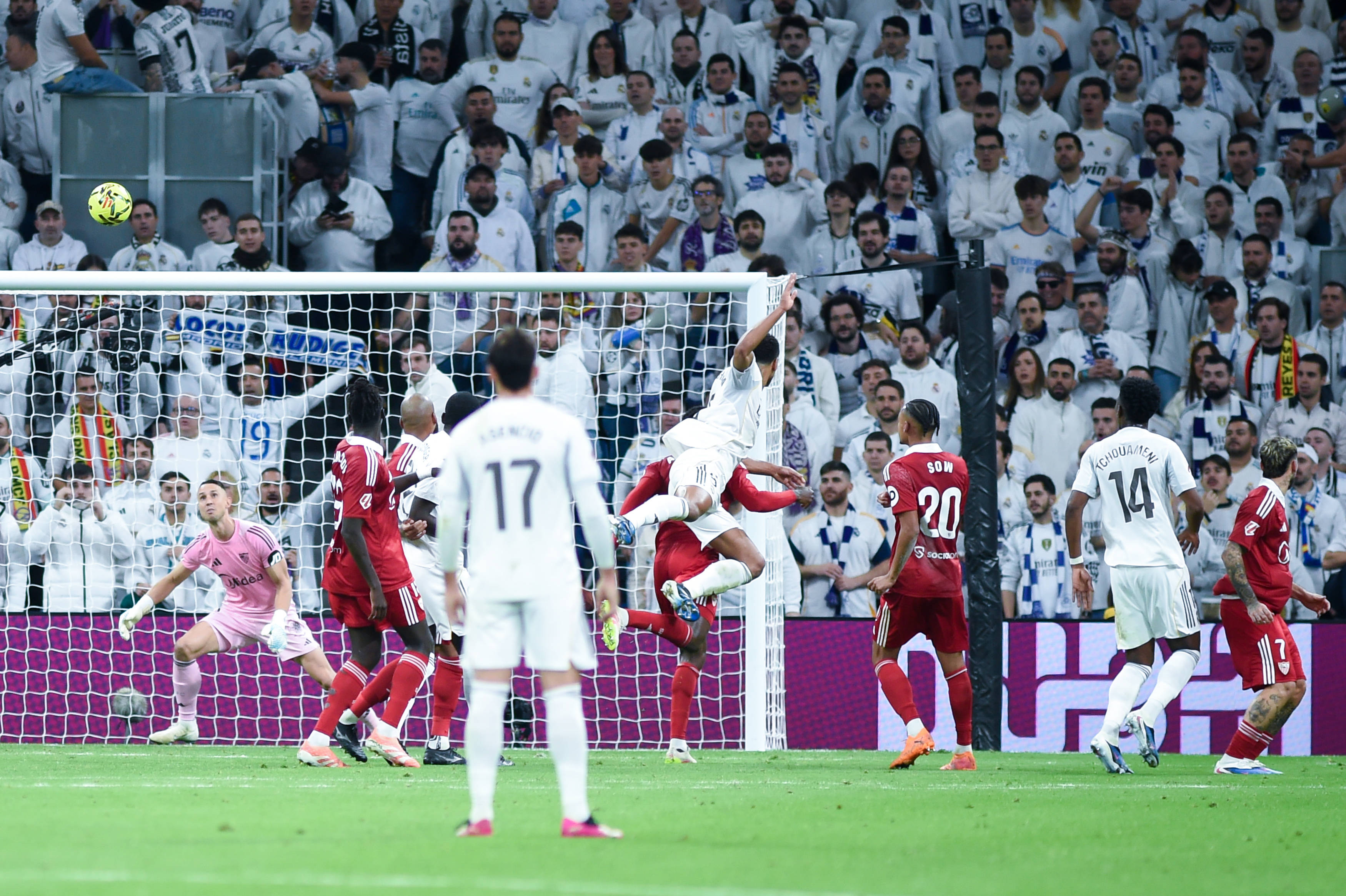 เมื่อวันที่ 20 ธันวาคม นักเตะของเรอัล มาดริด จู๊ด เบลลิงแฮม (กลาง) ทำประตูได้ระหว่างการแข่งขัน สำนักข่าวซินหัว (ภาพโดย กุสตาโว บาร์เรียโตส)