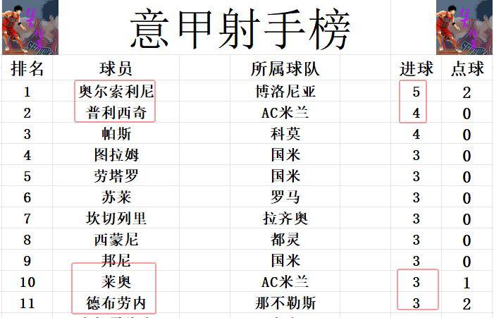 ในตารางคะแนน ออร์โซลินีนำเป็นจ่าฝูงด้วย 5 ประตู พูลิซิชที่บาดเจ็บพักอยู่ ยังคงรั้งอันดับสองร่วมกับปาส การทำประตูของเลโอในวันนี้ทำให้เขาเสมอกับเดอ บรอยน์, ซิเมโอเน, ทูราม, ลอทาโร่ และคนอื่นๆ ที่อยู่ในอันดับที่ 10 ด้วยจำนวน 3 ประตู