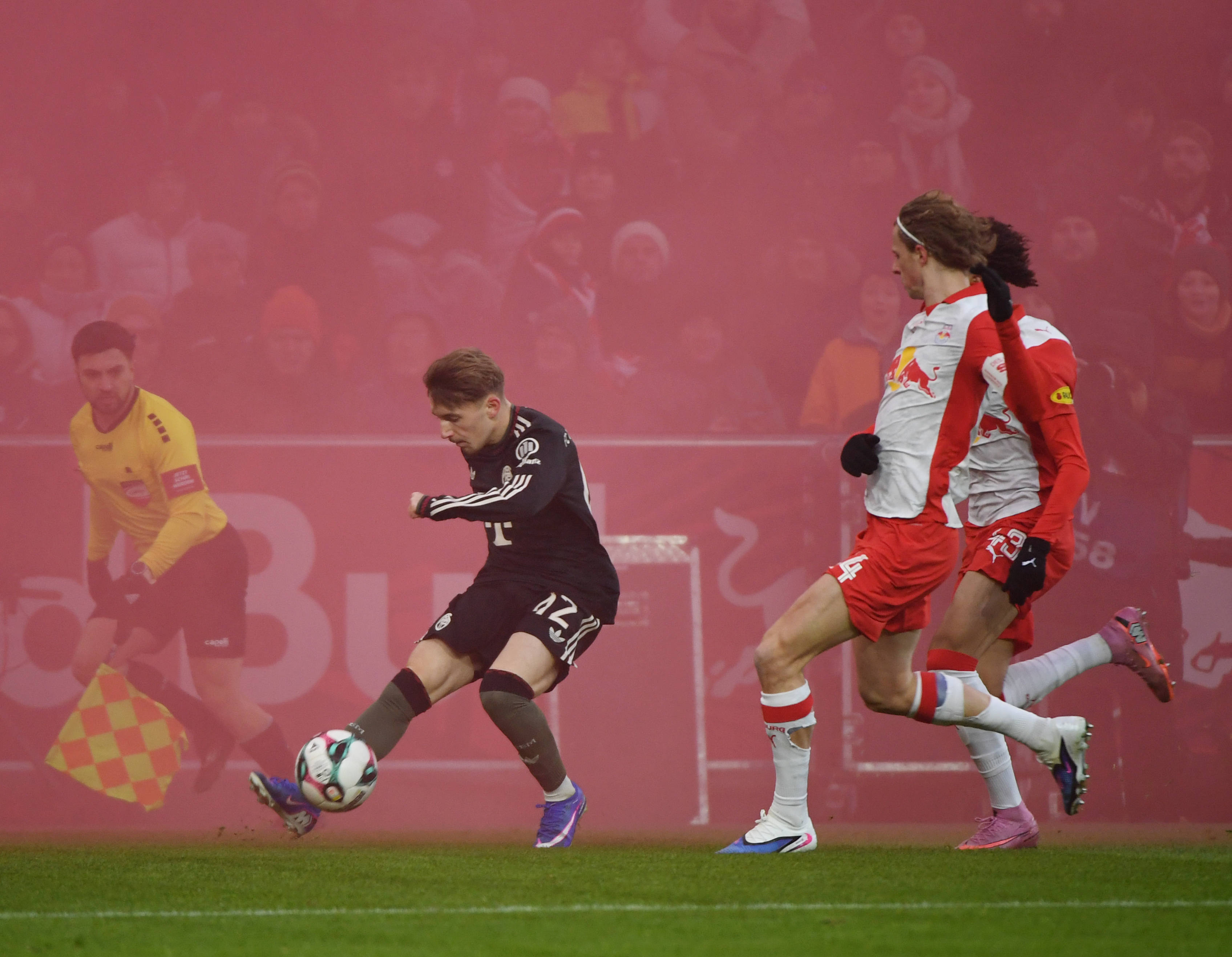 เมื่อวันที่ 6 มกราคม ดิอาซ นักเตะบาเยิร์น มิวนิค (ด้านบน) พยายามโหม่งลูกบอลระหว่างการแข่งขัน ภาพโดย เหอ ฉานหลิง, สำนักข่าวซินหัว